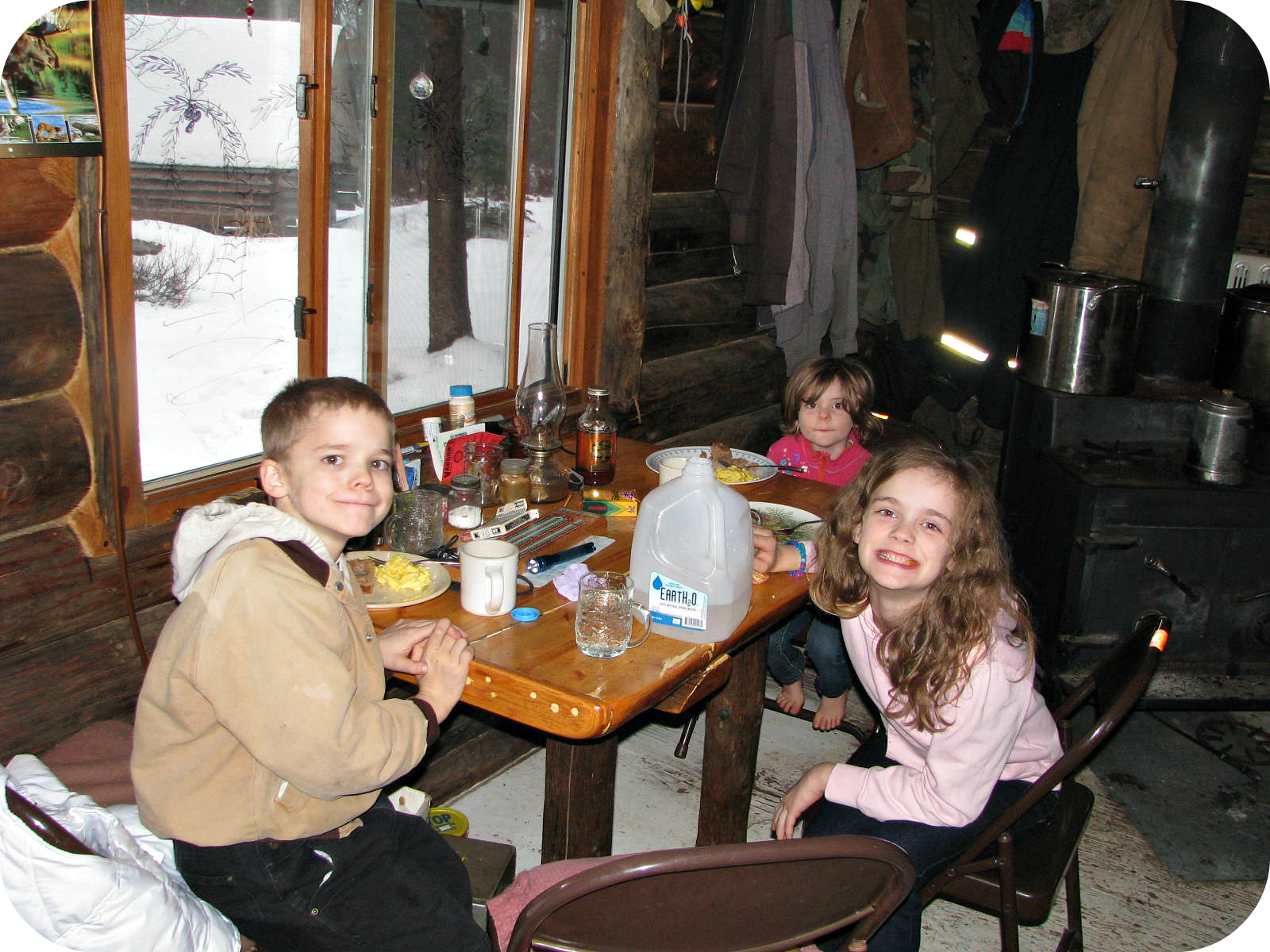 Once we got to the cabin and got the fire going we enjoyed a nice hot meal. Then, more silliness ensued…