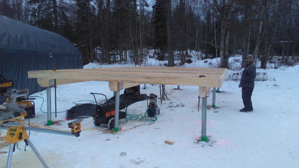 Beams and floor joists on techno metal posts.