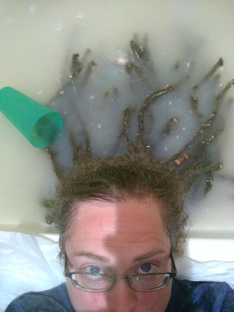 Fast forward to a friend of a friend knowing a gal that does Loc maintenance in Wasilla. So I’ve got an appointment for maintenance, day after tomorrow, and decided that I needed to do a deep clean. Gosh it’s been too long since I did the last one. 🤔 Even though I wash my hair weekly, I’m not exactly sure when that last deep clean was to tell the truth.