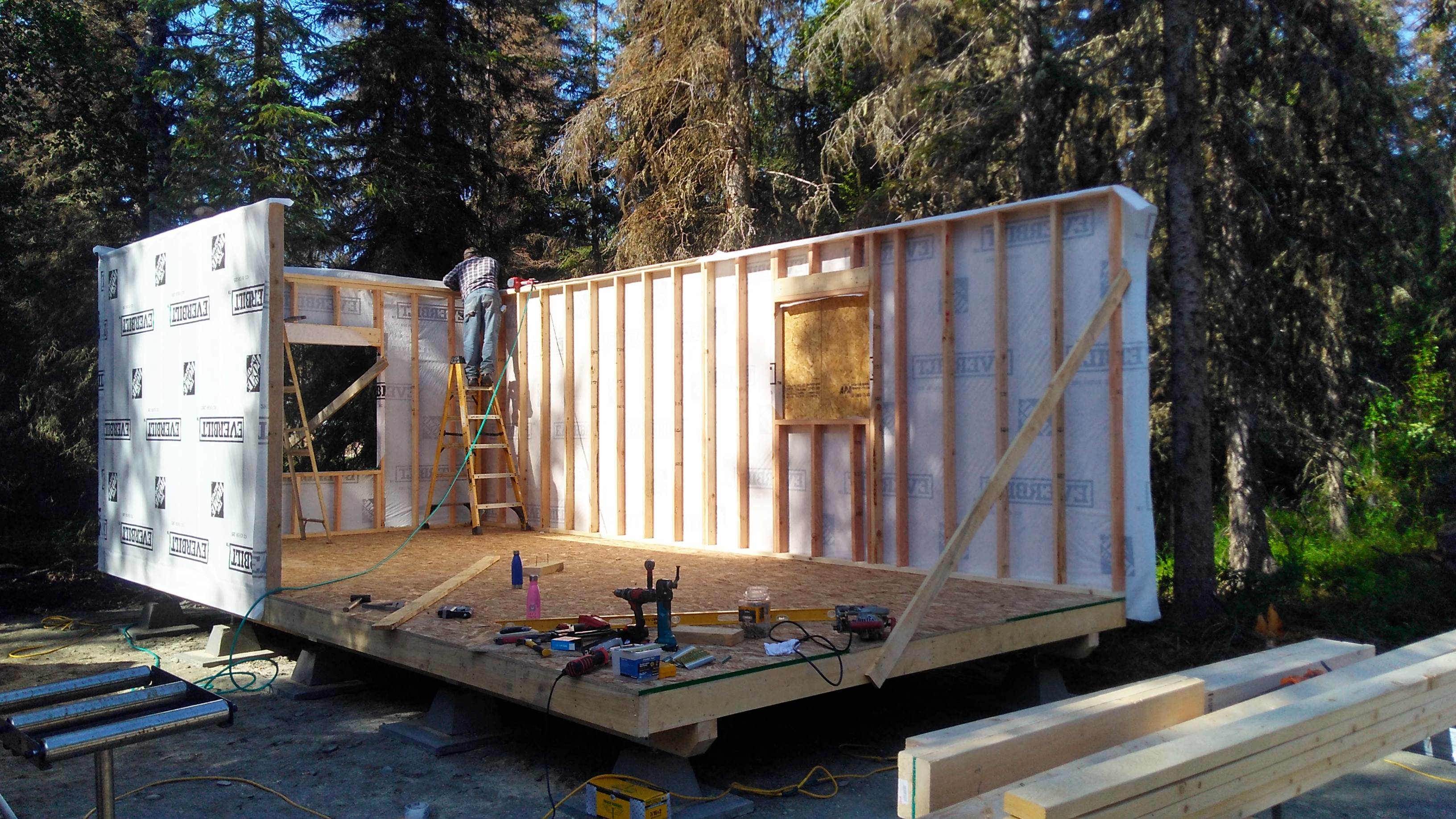 Today we started standing walls. Got 3 done. Tomorrow will be finishing framing and sheeting then trusses will be delivered at noon.