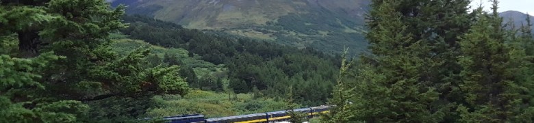 We rode from Portage to Grandview past Spencer, Bartlet and Trail glaciers. From the train station we traveled through marsh and flat lands, into cottonwood forests and gained more elevation until we were in hemlock and spruce forests. It’s cloudy with a little rain every now and then. Once in a while the sun pokes it’s rays through the fog and illuminates a mountainside. Glorious.