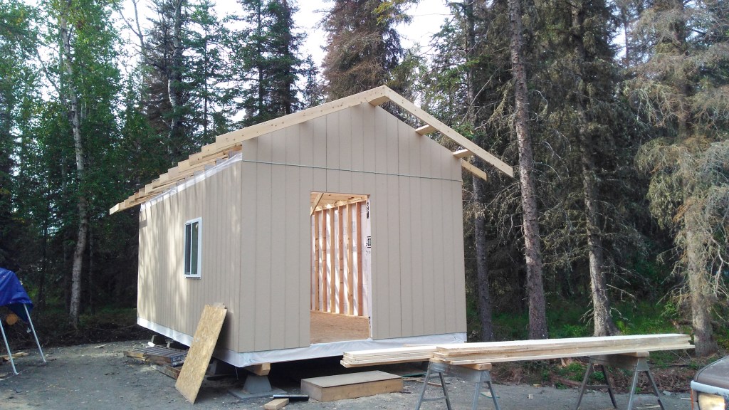 Friday was our ninth day and, except for cleanup and hauling off the tool trailer, we’re finished. Insulated, vapor barrier, accoustical sealant, and installed door and lock set. Short day and now we’re off to the cabin.
