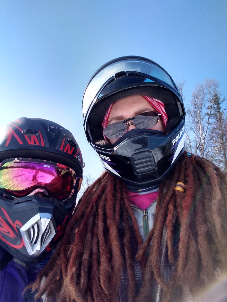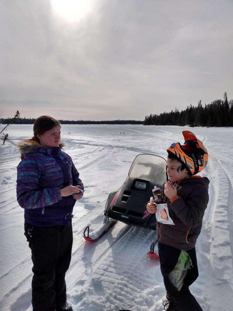 Me and my Little Girl.Lil Bit sitting on her sled. She’s about to outgrow it.Break time.Snack time. Riding makes him hungry.Last weekend ‘s ride