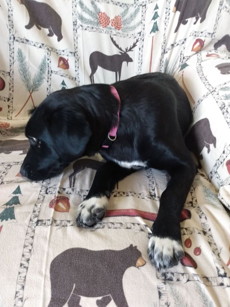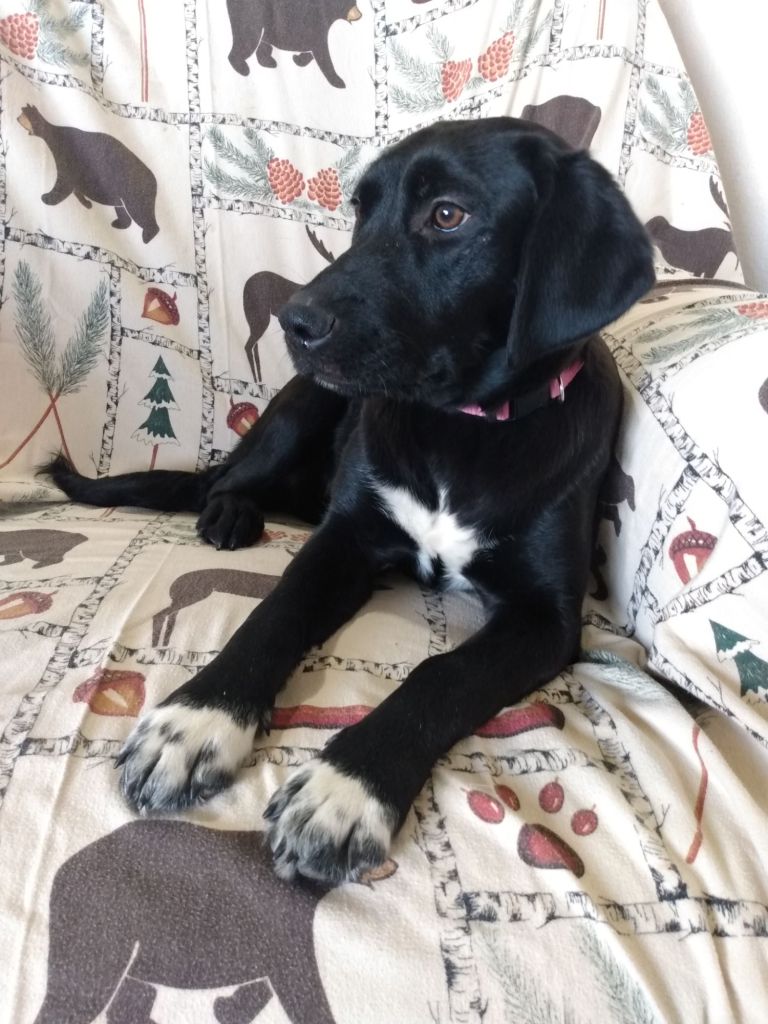 Beans is another very sweet girl. She’s potty trained, kennel trained and introduced to the leash. She favors the lab side and has slightly longer hair than all the other pups. She’s a snuggler and pretty calm overall.