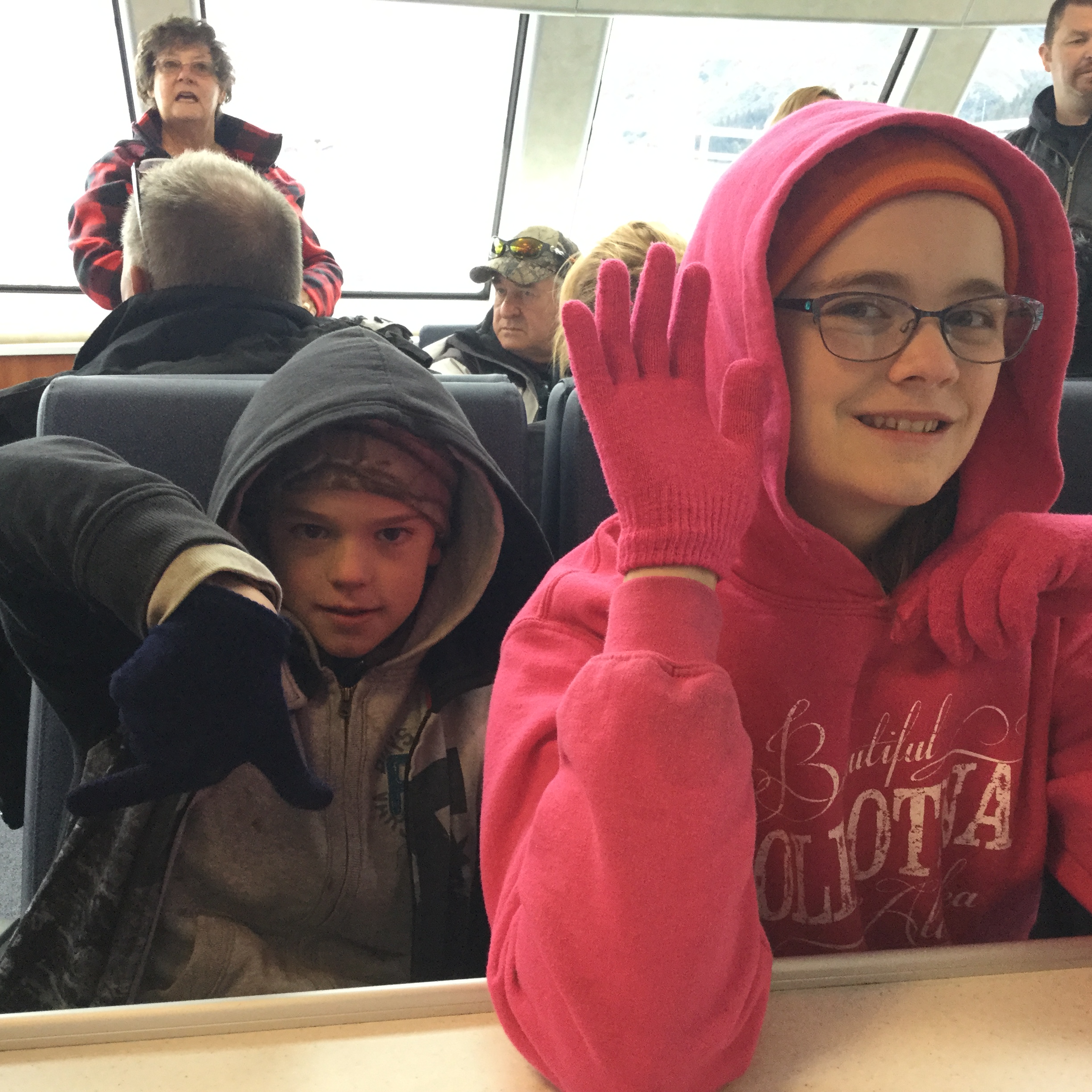 Once there, we decided we hadn’t dressed warm enough and layered on anything and everything we could find in the Pearl and I went a picked up gloves for all of us and a headband for myself. Yes, I still occasionally forget to bring everything “just in case”. It is Alaska after all.