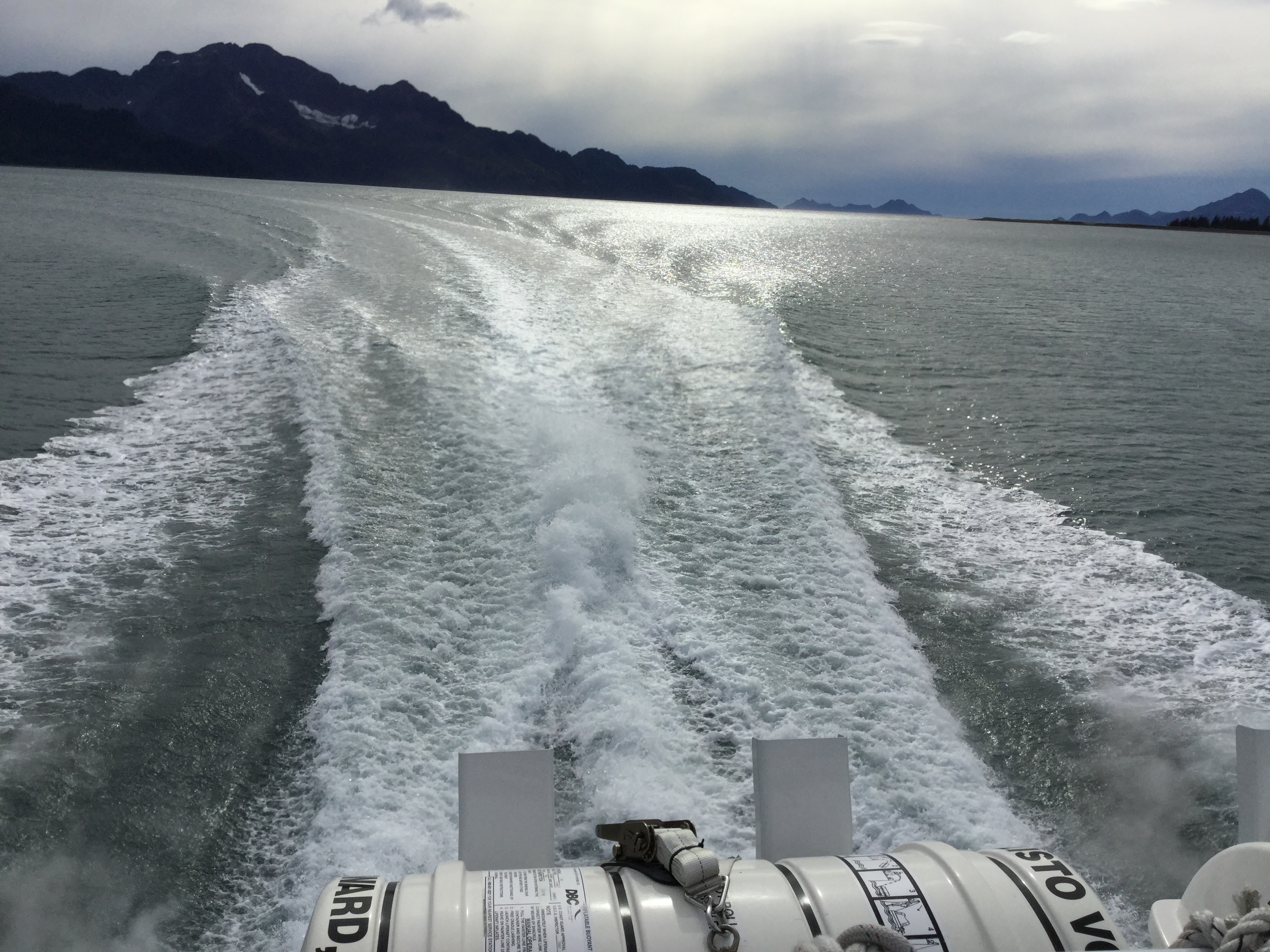 Then we were off again, back out Aialik Bay, and the weather started to turn a bit nasty, winds and waves picking up. We saw a few whale’s blowing in the distance so we headed that way. We eventually came upon a few humpback whales feeding and were blessed to see them come up for breath and dive down again. One young fella put on quite a display for us even flipping his tail up for us. No one breached though. And like the calving glaciers, so difficult to catch on film. But we have the experience forever. I was sitting at the back of the boat with Lil Bit, who after the bumpy ride was feeling a bit green around the gills. She and I got to see the whale show together. Something about sharing such an awe inspiring moment with one of your littles.