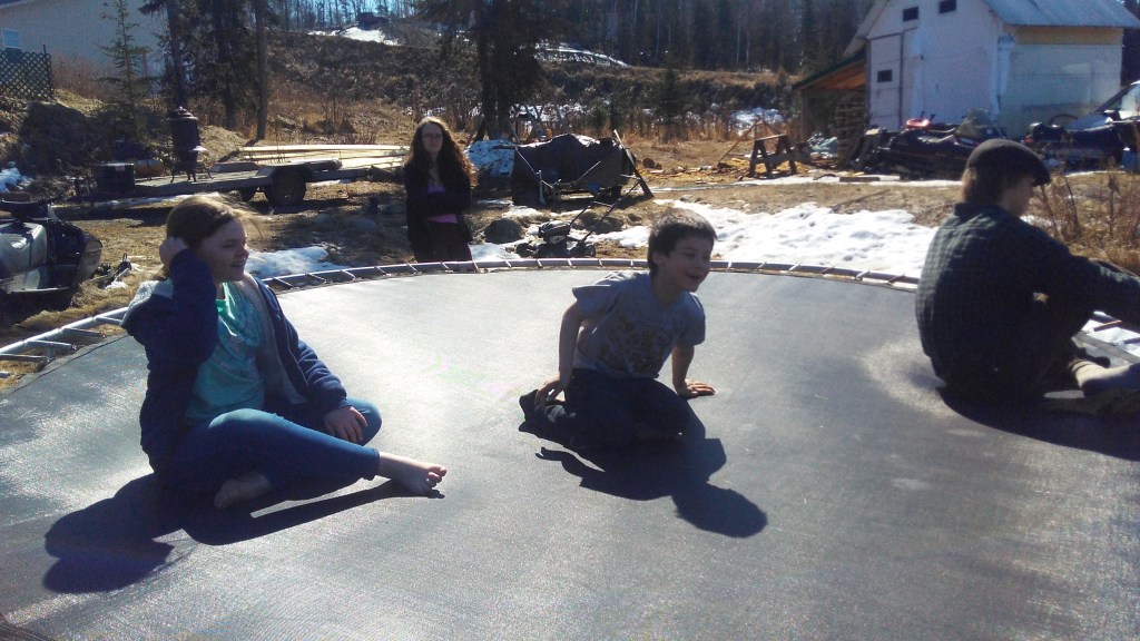 The kiddos set up the trampoline today, with some difficulty. But it’s up and ready for high energy kids. While we were out a large flock of sandhill cranes flew over chattering steadily. We’ve seen several geese flocks over the last few days but these were the first cranes. Summer is here.
