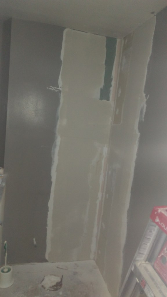 Let the fun begin! My helpers were eager to get started. They edged the entire space while I roller, sprinkled and sprayed the finish. Now it’s time to dry. This is the hard part, waiting to use the space that we’ve worked so hard on!!