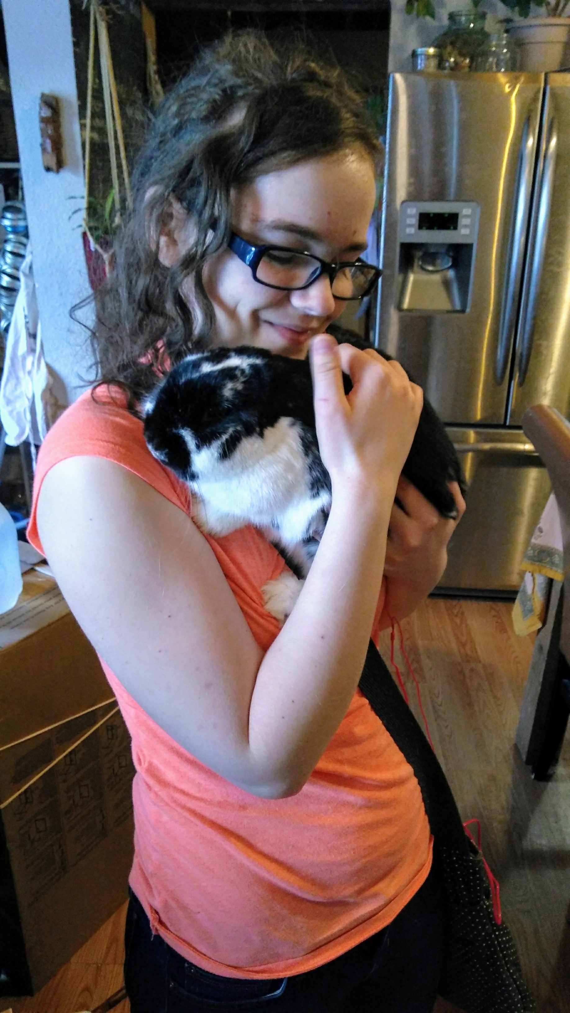 Thing 1 with her new bunny “Francis” Franny, or bad bunny as I call her.