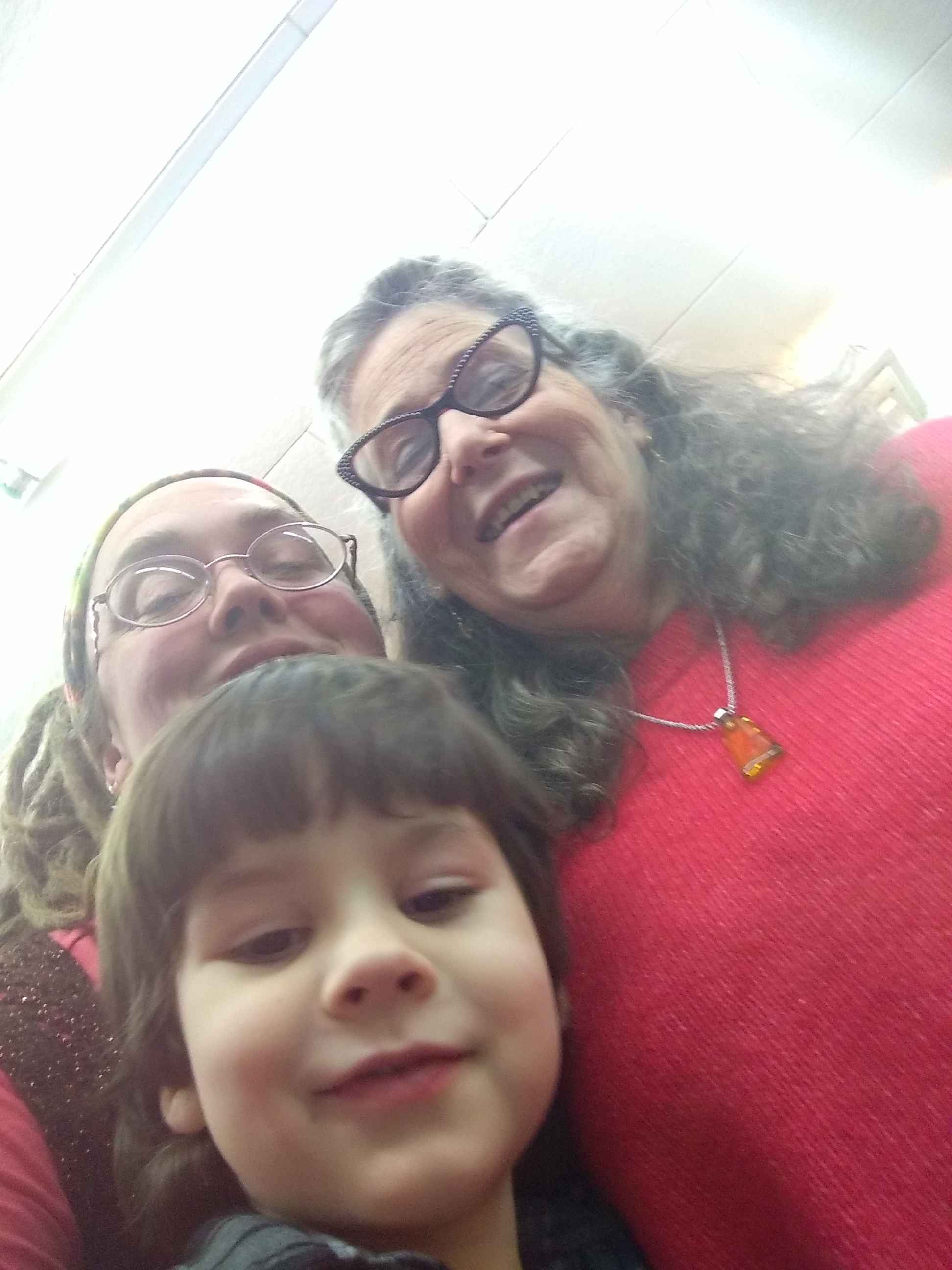 She wanted to try curly hair, so her sister put her up in rollers. Cute, but too much work.