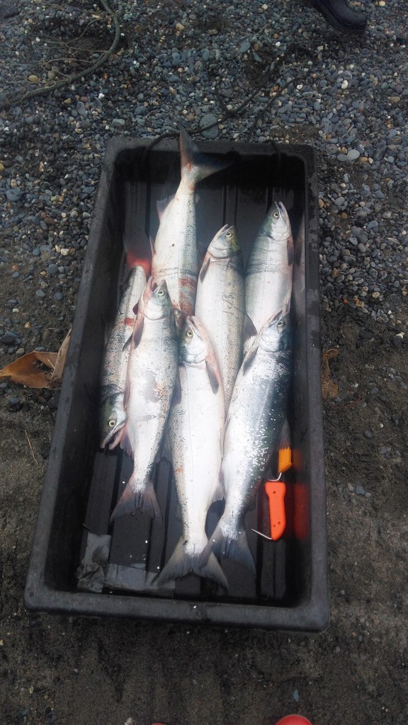 We started our Personal Use Fishing season with a bang. First tide out, three nets set and within 12 minutes we had fish in all three nets.