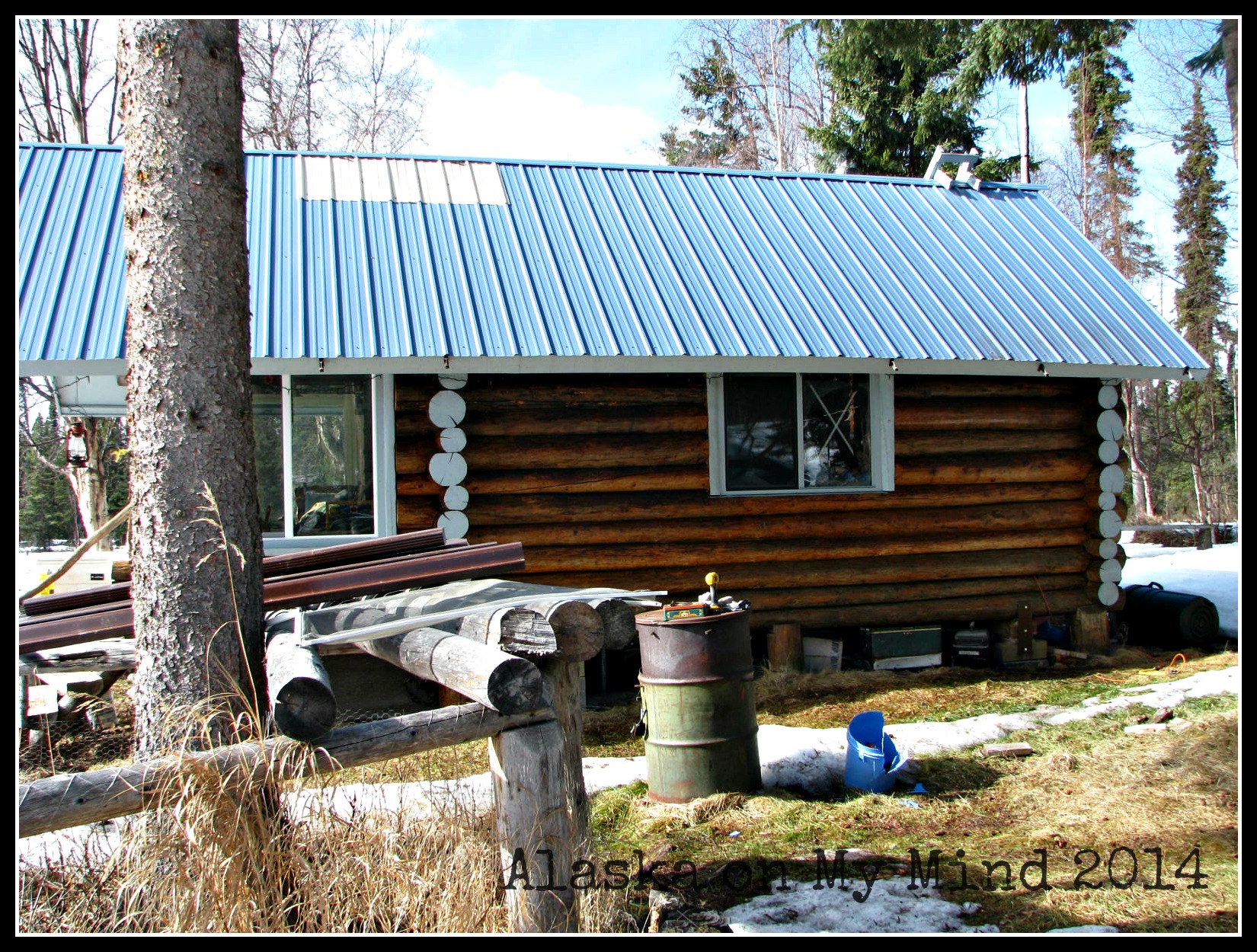 During March and April we spent three weekends going back and forth to the cabin, when we could actually drive a vehicle out! We spent lots of time working on the outhouse and have very little left to do. We added bats to finish out the front and sides, only have about 3 more to add to the back (we ran out!). We also put shingles on the roof and insulated the inside roof and walls. It is nice a cozy inside!
