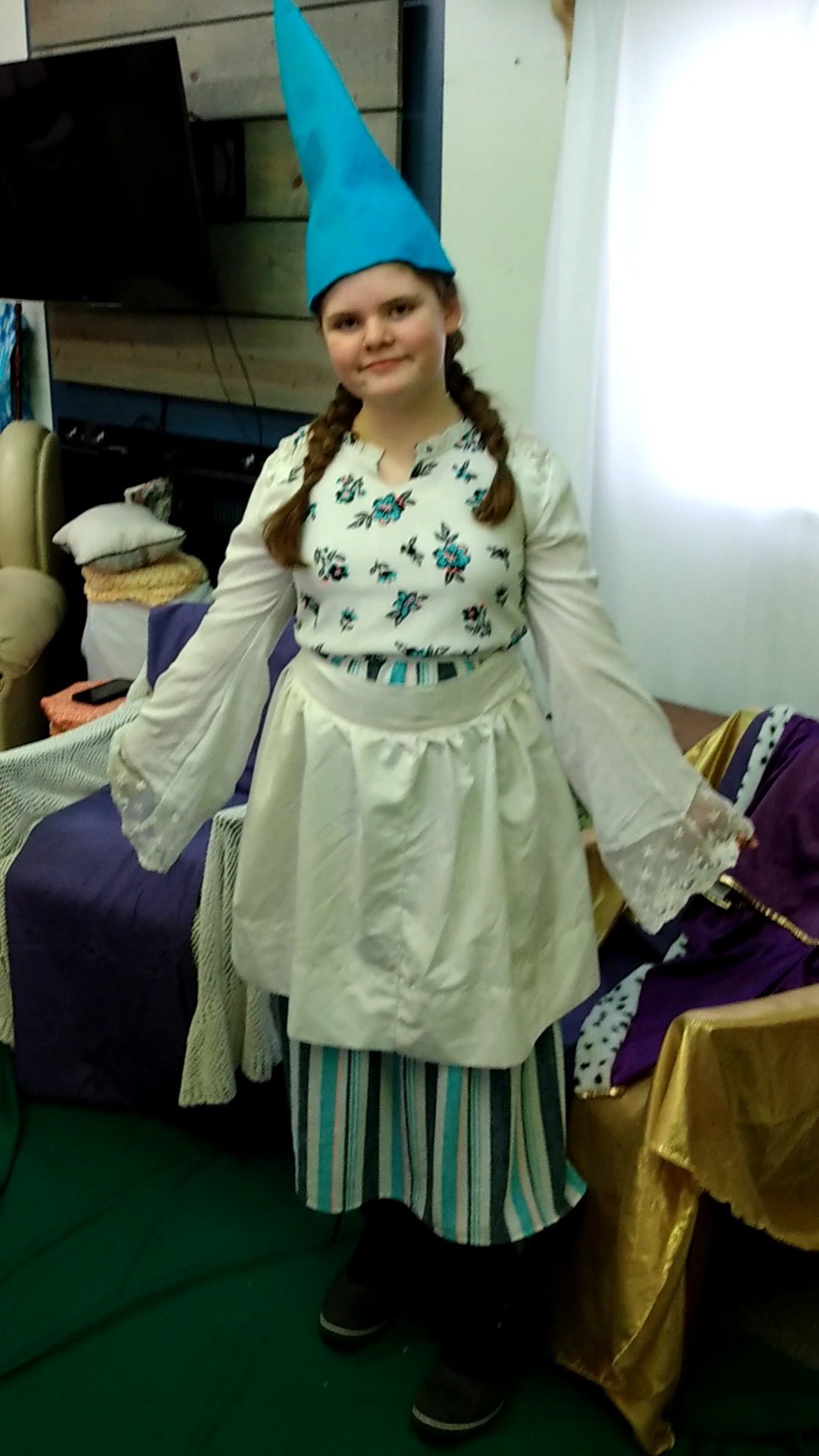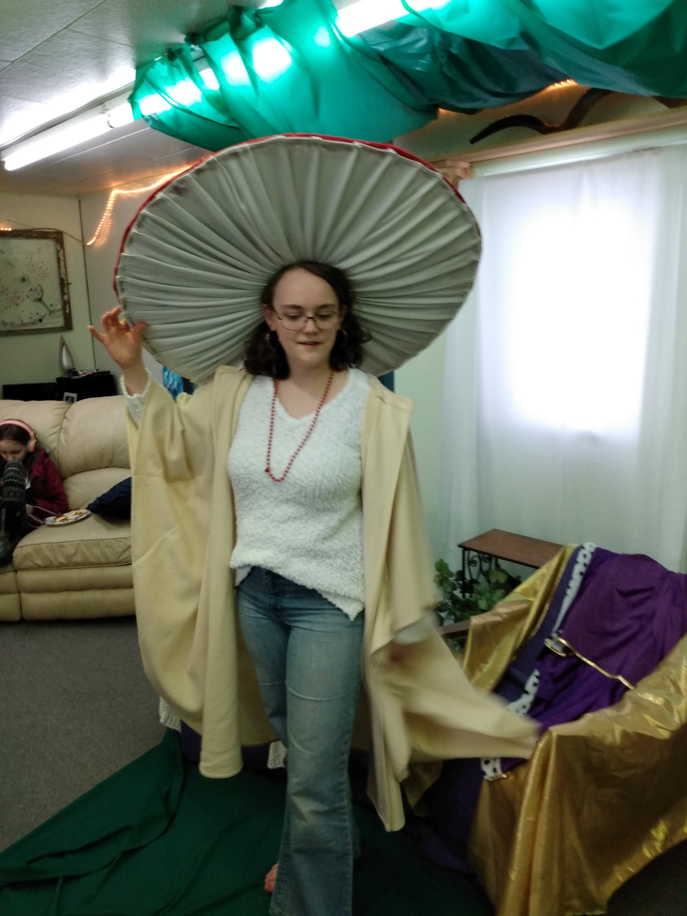 We had great fun at our Purim Party. Our theme this year was The King’s Garden. Thing 1 won the prize for the Mushroom costume that she made, I was runner up as Mother Nature. Everyone had a lot of fun.